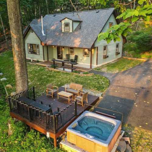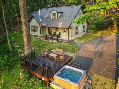 The views from this cottage will blow you away! Wake up every morning to this fairy tale scene while you enjoy your coffee, and end the day soaking up the sunsets with a glass of wine. Don't let the cold stop your fun--just move to the oversized fire pit or into the hot tub! If you must work remotely (and we hope you don't!) there is high-speed WiFi to satisfy all your videoconferencing needs. This cottage has it all!