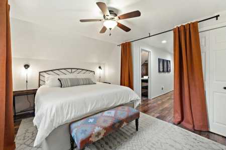 Bedroom #1: King bed on the 2nd floor; separated by a curtain is another room with a bunk bed