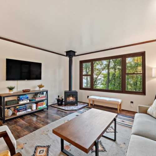 The views from this cottage will blow you away! Wake up every morning to this fairy tale scene while you enjoy your coffee, and end the day soaking up the sunsets with a glass of wine. Don’t let the cold stop your fun–just move to the oversized fire pit or into the hot tub! If you must work remotely (and we hope you don’t!) there is high-speed WiFi to satisfy all your videoconferencing needs. This cottage has it all!