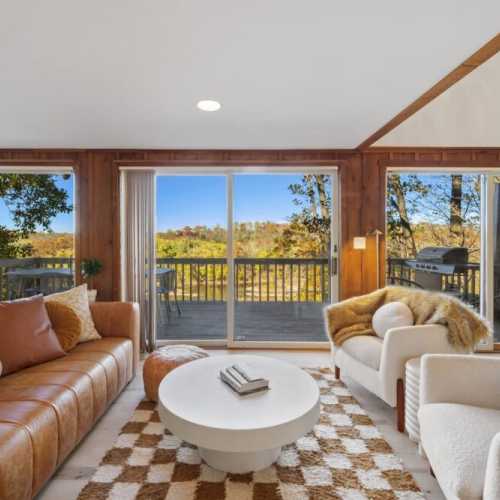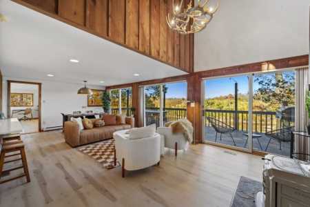 The open concept and living space is comfortable with wall-to-wall sliding glass doors and beautifl river views.