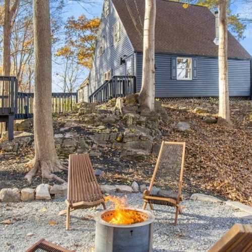 The view from this cabin will take your breath away. Perched atop a cliff overlooking a peaceful stretch of Potomac River, you couldn’t ask for a better place to leave the world behind. With an outdoor fire pit and an indoor wood stove, this beautiful cabin has everything you need to stay cozy year-round. And the chic decor and luxurious renovation is just what you’re looking for. If you’re searching for a cabin getaway then look no further!