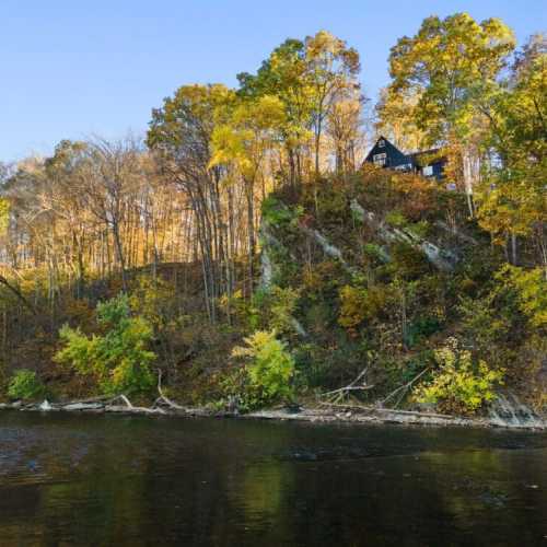 NO RIVER ACCESS: Although the property sits atop a cliff overlooking the river, there is no easy access to the water. It is very difficult and unsafe to walk from the house down to the water.