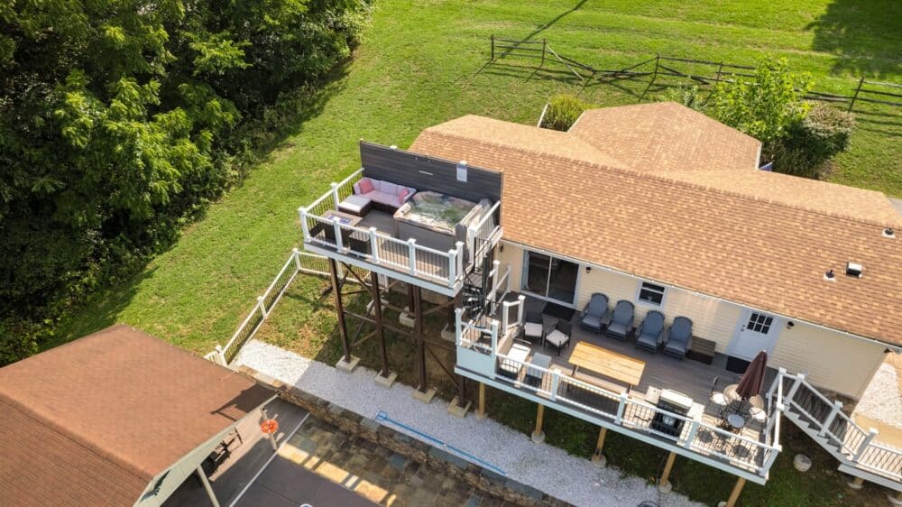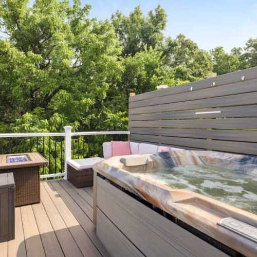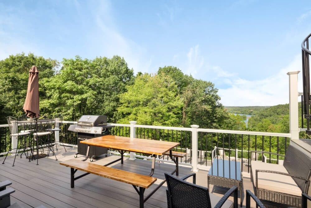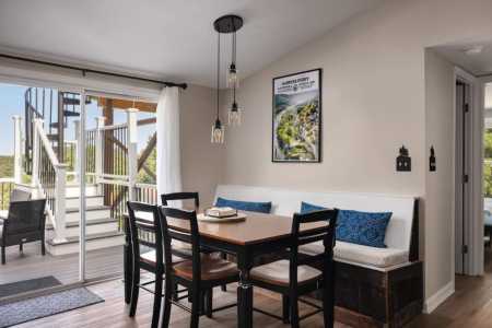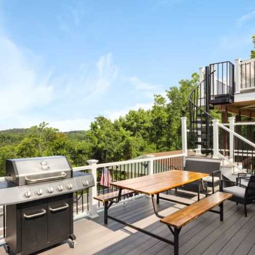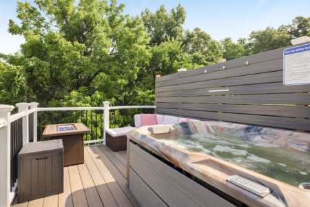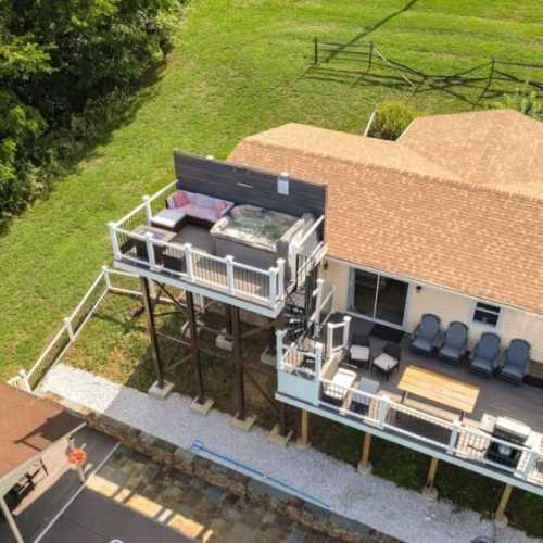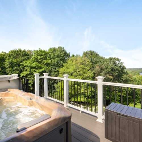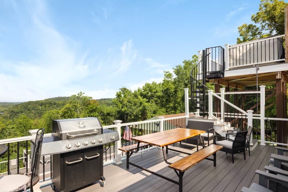 STEEP SPIRAL STAIRCASE: Please note that access to the top deck and hot tub requires using a steep spiral staircase adjacent to a long drop of 30+ feet. This may not be suitable for children, elderly guests, or those with mobility challenges. Use caution when ascending or descending.