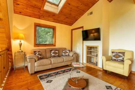Imagine soaking up the last rays of sunset with a glass of wine from the back deck of this mountaintop cabin! Or, when the weather cools off, soak in the hot tub before enjoying a roaring fire inside the great room. Blissfully secluded on 3+ acres of private woodland, this cabin will make you never want to leave once you arrive! WiFi is blazing fast at 250 Mbps, so you should have no trouble streaming or video conferencing, in case you need to work remotely