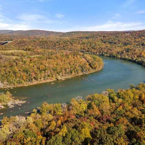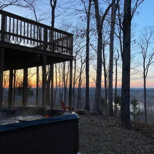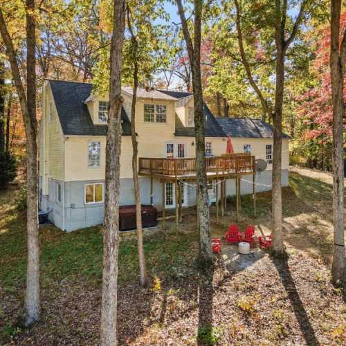 A huge hot tub, stunning hilltop views, the sound of rushing rapids below–this place has it all! On 3+ acres of private woodland set high on a hill overlooking the Shenandoah river, this large river house can accommodate many guests and is just 15-20 min from tons of attractions: whitewater rafting, historic Harpers Ferry, Virginia wine country, and more.