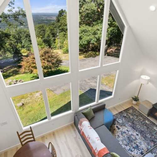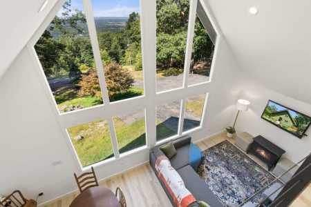 Looking to relax with a lovely view? This cabin is it! Sitting just off a high mountain road, this recently remodeled A-frame boasts a bright interior. The huge westward facing windows and unobstructed views of the valley make sunsets here a real treat. Wake up from the loft bedroom and your first image will be the sunbathed valley just beyond the loft's minimalist cable rails. Book while it's still available!