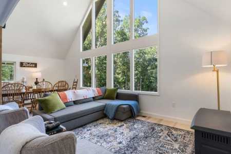 Looking to relax with a lovely view? This cabin is it! Sitting just off a high mountain road, this recently remodeled A-frame boasts a bright interior. The huge westward facing windows and unobstructed views of the valley make sunsets here a real treat. Wake up from the loft bedroom and your first image will be the sunbathed valley just beyond the loft’s minimalist cable rails. Book while it’s still available!